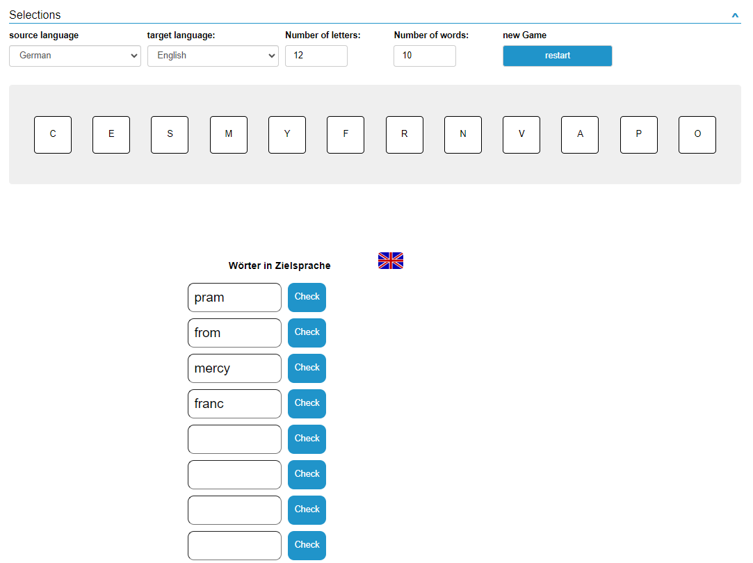 Von hier kannst Du alle Spiele in myPhraser aufrufen. Damit Du nicht gleich von den vielen Spielmöglichkeiten erschlagen wirst, führen wir Dich Schritt für Schritt an die einzelnen Spiele heran.